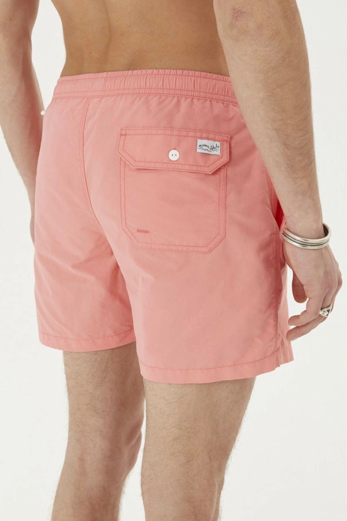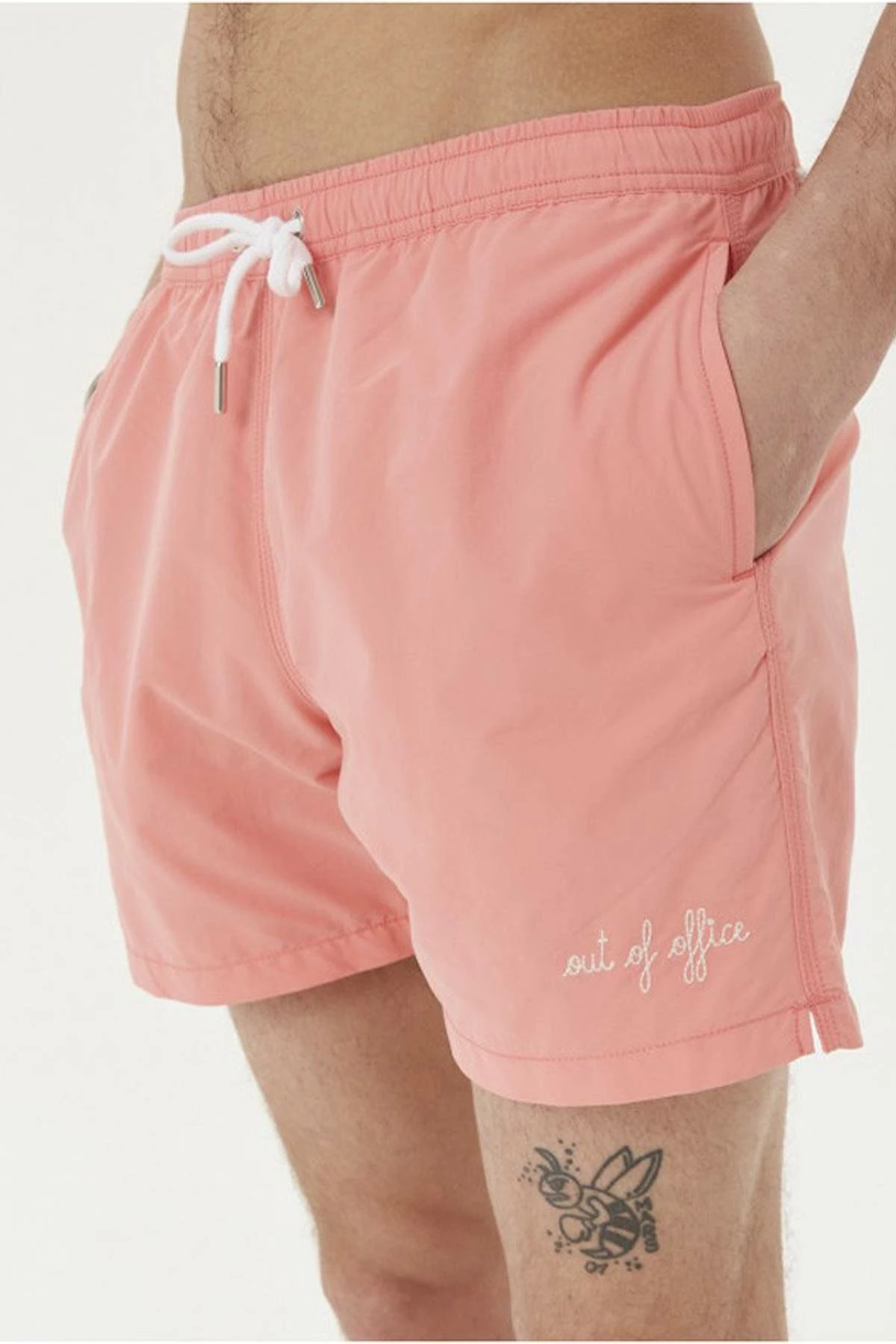 La ceinture est élastique avec cordon, en toile brossée et poches cotées et au dos.